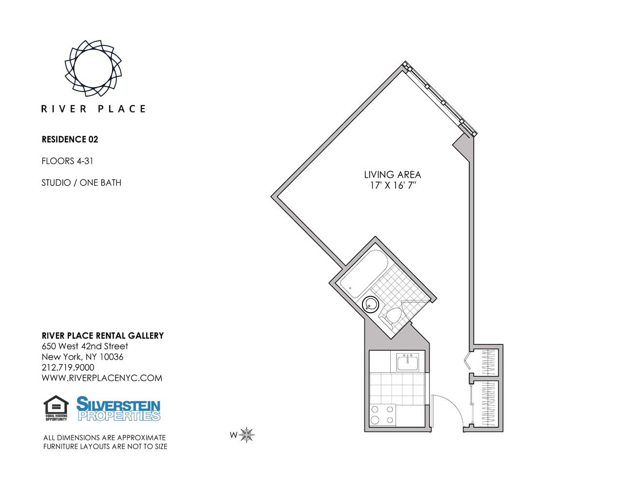 River Place II LLC and River Place II CH LLC reserve the right, in its sole discretion, to make changes or modifications to unit specifications, materials, features and colors without notice. Pricing/availabilities are subject to change. Floor plan dimensions are approximate. Apartment photos and virtual tours are for reference only as apartment floorplans, specs and features may differ.